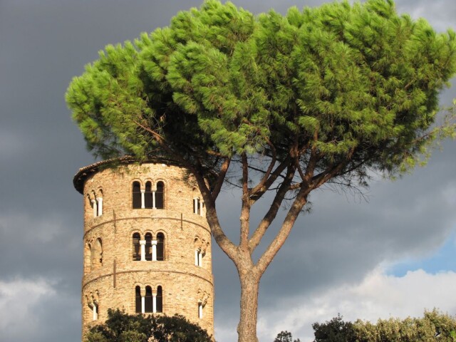 Ravenne, c’est un peu le but de ces vacances. Nous en profitons un maximum. La ville est en soi assez ramassée, facile de tout faire à pied en un temps assez limité. Et nous avons largement le loisirs de visiter tous les monuments d’importance. C’est véritablement toute l’histoire de la chute de l’empire romain qui se dévoile dans cette ville un temps capitale de l’empire romain d’Occident avant sa chute. Elle est ensuite capitale du royaume des Ostrogoth. Theodoric le Grand y a d’ailleurs son mausolée. La ville passa ensuite en mains lombarde, puis franque avant de passer sous le contrôle du Pape. Et toute cette histoire se lit dans les monuments de la ville dont le plus impressionnant est la basilique San Vitale qui regorge de mosaïques somptueuses.