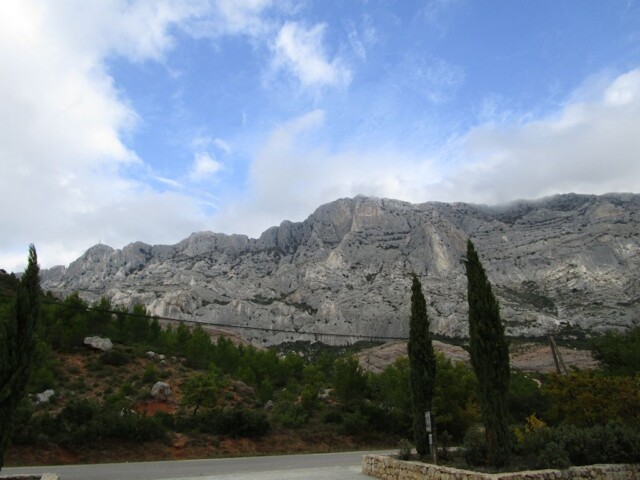 Départ pour le bord de mer. Nous longeons la montagne sainte Victoire chère à Cézanne. Jolie route, un peu étroite, mais peu fréquentée. Quelques endroits pour s’y arrêter et admirer le point de vue.