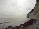 Le jour suivant nous arrivons au Danemark, via le ferry qui relie l’île allemande de Fehmarn à celle danoise de Lolland et nous poursuivons jusqu’à Møn pour voir les fameuses falaises (inscrites elles aussi au patrimoine naturel de l’Unesco). Et nous ne sommes pas déçus, c’est tout le contraire. Une randonnée intensive nous conduit au pied des falaises et le long de la mer sur une plage de galets entre eau et falaise. Et le lieu se mérite. La seule façon d’y accéder est d’emprunter des escaliers de bois construits pour atteindre la mer … et y remonter. Au total nous descendons 582 marches et remontons 496 marches un kilomètre plus loin, les falaises culminant à un peu plus de 100 mètres au-dessus de la mer. Notre randonnée d’une douzaine de kilomètres nous permet d’admirer une bonne partie des falaises, en partie depuis le bas, en partie depuis le haut.