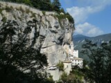 Nous avons également pris le chemin des montagnes direction Spiazzi pour découvrir le sanctuaire Santa Madonna della Corona presque suspendu dans le vide à flanc de falaise. Une situation vertigineuse qui n’est pas sans rappeler un peu Rocamadour où nous avions passé un mois plus tôt.
