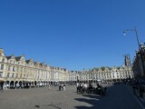 En deux étapes nous arrivons à Arras avec quelques souvenirs en cours de route, notamment le contournement de Laon dominée par son imposante cathédrale visitée en 2015 lors de notre périple en Picardie. Nous longeons aussi St-Quentin qui nous fait un peu de l’œil, mais nous ne nous y arrêtons pas. Comme nous arrivons à Arras en milieu d’après-midi, nous en profitons pour déjà faire un tour en ville. L’aire de stationnement est assez proche du centre, mais surtout nous apprenons que les transports publics sont gratuits et qu’il y a un arrêt à la sortie de l’aire de camping-car. Il faut dire qu’à peine entamé notre marche vers le centre qu’une sorte de mini-bus s’arrête à notre hauteur et que le chauffeur nous hèle « vous venez de l’aire de camping car? Et vous allez au centre? Montez, je vous y amène ». Une fois à bord, notre chauffeur nous explique que les transports sont gratuits et se mue pratiquement en guide touristique. « Ici vous avez la Mairie … et à droite la Grand’Place … et là si vous prenez cette ruelle, vous arrivez sur la Petite Place … et si demain vous prenez le train pour Lille, vous vous arrêterez ici, la gare est juste en face, on la voit au bout de la rue ». Bref, un accueil des plus encourageants. Et ce sera ainsi durant tout notre voyage.