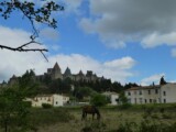 Une nuit au camping de la Cité à Carcassonne. Assez bon marché comparativement à l’aire de stationnement adjacente. Pour quelques euros de plus, il y a toutes les commodités absentes de l’aire (emplacement spacieux, douche, électricité). Et de surcroît très bien placé pour visiter Carcassonne qui se situe à une vingtaine de minutes à pied le long d’un petit ruisseau. Une belle surprise, mais on ose à peine imaginer l’encombrement en été.