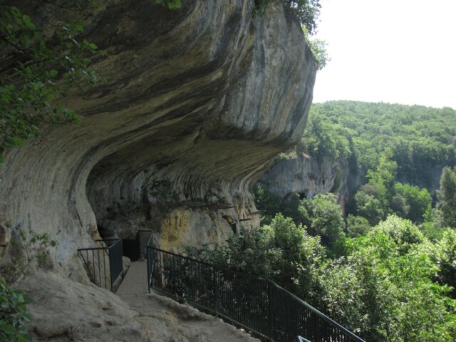 Au lendemain de cette sortie bucolique, nous visitons un aménagement préhistorique, le Roc de Cazelle, à un jet de pierre des Eyzies. En 2000, nous avions visité la site troglodyte de la Roque St-Christophe, nous ne voulions pas y retourner et avons opté pour un autre site où le décor est planté pour inviter le visiteur à un voyage dans le temps.