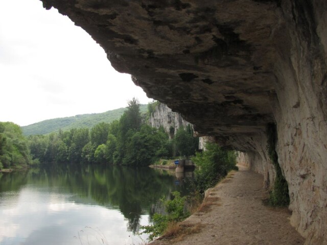 Au pied la falaise de St-Cirq-Lapopie court un chemin de halage peu commun. Sur plusieurs centaines de mètres, il a été creusé dans la falaise, et les ouvriers ont même pris le temps pour des gravures en formes de bas-relief. Tout simplement époustouflant. Une belle balade, en partie à travers champs, que celle du chemin de halage. Compter environ trois heures pour faire l’aller-retour entre St-Cirq et Bouziès. La première partie offre une belle vue sur St-Cirq d’en bas. Le passage le long de l’écluse donne envie de faire un bout de trajet en pénichette.