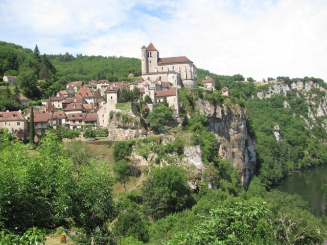 Le village de St-Cirq-Lapopie est construit de manière assez vertigineuses au-dessus du Lot. Il compte au nombre des plus beaux villages de France et ce n’est pas galvaudé. Fort heureusement, nous avons pu le visiter hors saison. On ose à peine imaginer la foule qui doit se presser ici en juillet et août. Mais ce calme a aussi le revers de sa médaille. C’est presque trop calme, les boutiques des artisans ne sont pas toutes ouvertes, les bistrots pas non plus. Grimper à St-Cirq depuis le camping est l’affaire d’une quinzaine de minutes, soit par la route, soit par le chemin et les escaliers à flanc de falaise. Une fois sur place, il faut impérativement se rendre à l’endroit le plus élevé pour jouir d’un panorama grandiose sur toute la région et une vue plongeante sur le Lot.
