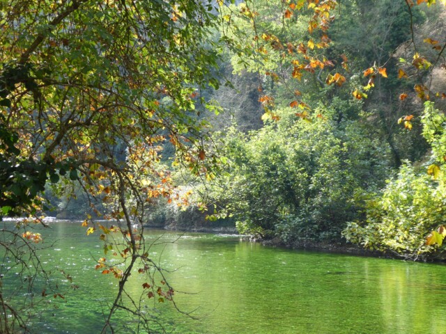 La source de la Sorgue, à Fontaine de Vaucluse, est un lieu idyllique. En cette saison de basses eaux, tout respire le calme et la tranquillité. La balade jusqu’à la source de la Sorgue est des plus charmante. Pour plus de mouvement, il faut y venir en avril ou mai. Alors que le débit est inférieur à 10’000 mètres cube d’eau par seconde à l’automne, il peut être jusqu’à dix fois plus élevé au printemps. Et pour la petite histoire, cette exsurgence a donné le nom du département. La vallée dans laquelle la Sorgue prend sa source est un cul-de-sac, une vallée close, Vallis Clausa était d’ailleurs le nom originel du village, qui se traduit par Vau cluso en provençal.