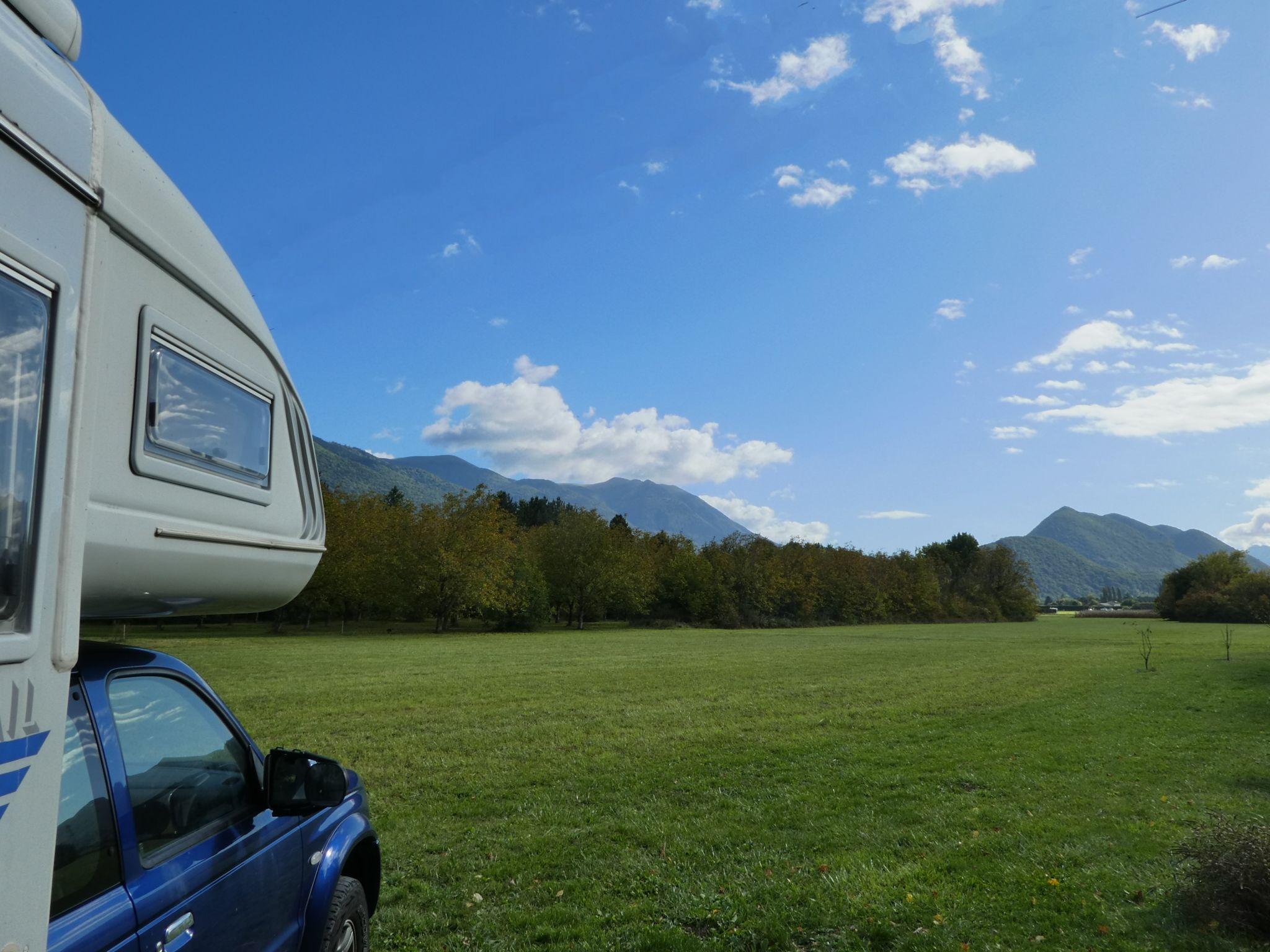 Une nuit au Camping du Moulin de Tulette à Varce-Allières près de Grenoble, camping « à la ferme », très bon accueil du genre « placez-vous où vous voulez ». Et cueillette de noix.