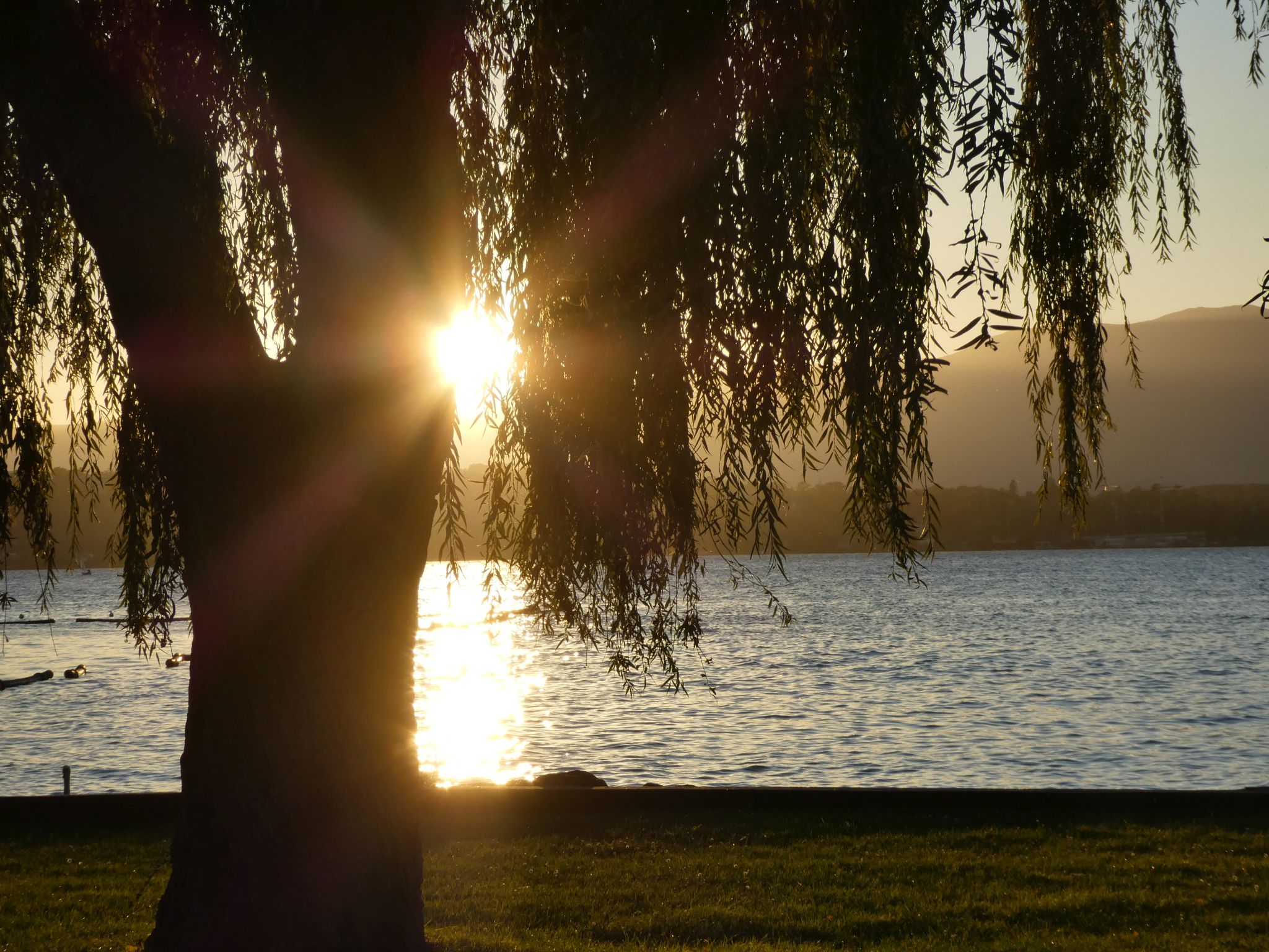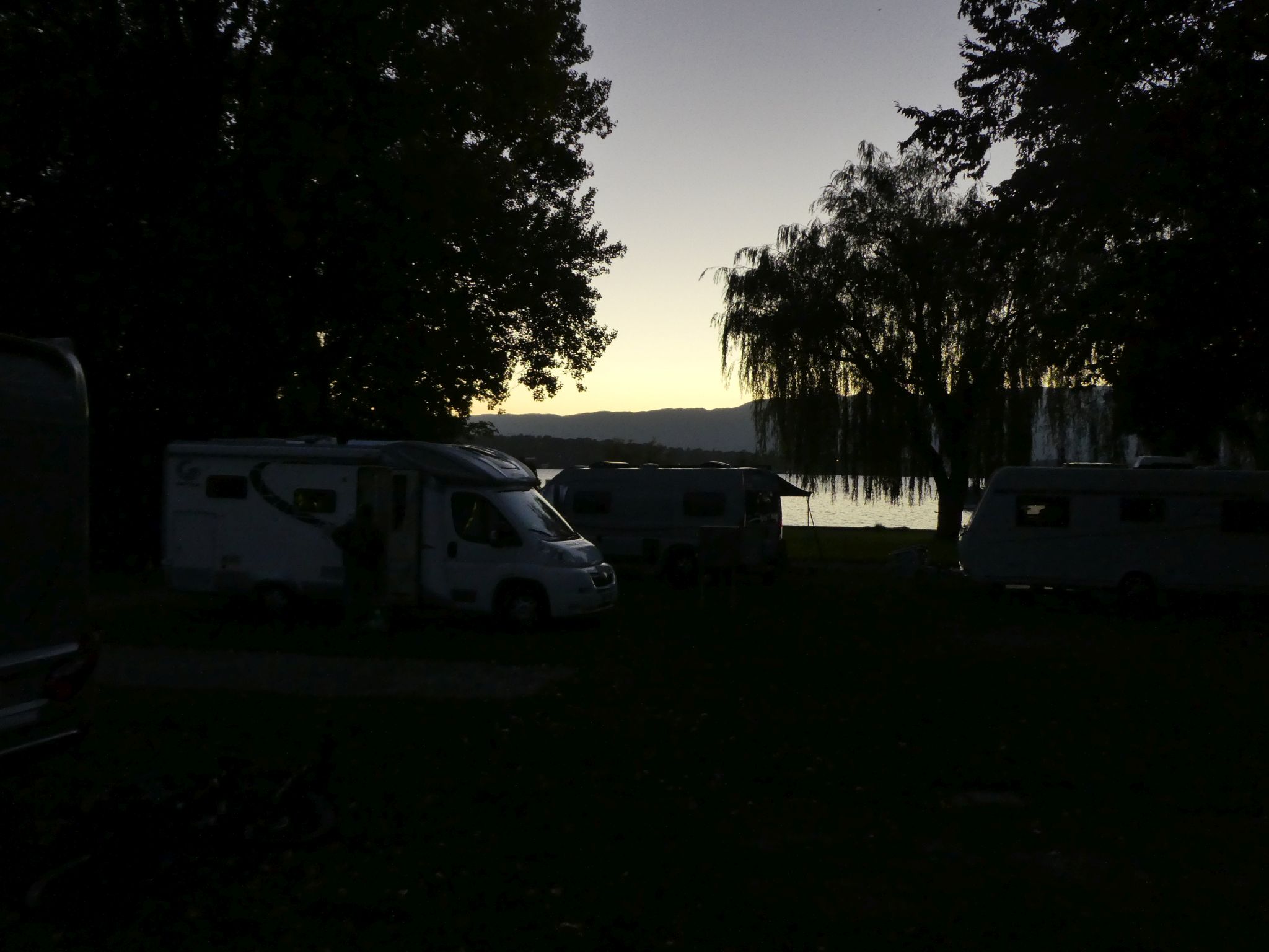 Une nuit au camping TCS de Collonge-Bellerive près de Genève. Au bord du lac, plage privée, un peu cher, mais c’est la Suisse.