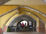 Le samedi est consacré à une virée en Drôme provençale. L’ambiance provençale est encore bien présente même si la topographie est bien différente. Dieulefit est un petit village étonnant. Une longue rue marchande mène au vieux bourg ramassé sur lui même. On y découvre plusieurs enceintes concentriques qui marquent les époques et l’extension du village qui a vécu au rythme des arrivées des hospitaliers de St Jean, qui y ont établi une commanderie, puis des protestants venus d’Allemagne et de Suisse (les vaudois) et de leur progressive expulsion après la révocation de l’édit de Nantes. A quelques kilomètres se trouve le Poët-Laval (qui signifie petite colline dans la vallée selon le parler du coin). Charmant village, un des plus beaux de France, qui fut lui aussi une commanderie hospitalière et où les protestant sont arrivés en nombre après la réforme. Tout en pente, les rues sont plutôt des successions d’escaliers. L’ensemble est joliment conservé et affiche un charme certain. En haut du village, face à la commanderie, la terrasse de l’hôtel des hospitaliers offre une vue splendide.