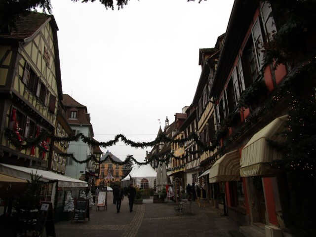 Ein Paar Weihnachtsgeschenken können wir noch finden und haben Zeit für ein Stadtbummel. Und was wäre ein Reise in Elsass ohne sich Zeit für etwas Weinkauf zu lassen. Wir halten im Laden der Domaine viticole de la ville de Colmar in der Grand Rue, wo uns der Verkäufer verführerische Gewürztraminer kosten lässt, und prompt kaufen wir je zwei Flaschen von drei verschiedenen Gewürztraminer, von fruchtig bis süß. Und so endet unser jährlichen Christkindlmarktsreise. Zufrieden mit dem Camper sind wir auch.