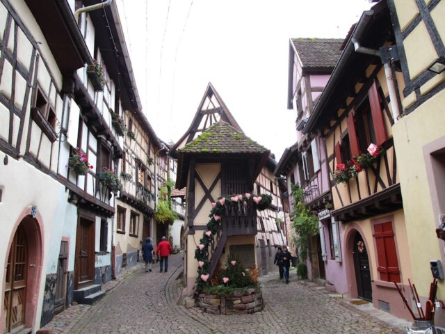 Über Mittag fahren wir weiter Richtung Riquewihr. Das Dorf haben wir ein Paar Jahre vorher im Sommer schon besucht. Es gehört zu den schönsten französischen Dörfer, ein Verein das über 150 Dörfer in ganz Frankreich vereinigt. Alle haben gemeinsam mindestens zwei geschützte historische Monumente, eine bescheidene Bevölkerung, weniger als 2000 Einwohner, und eine rege handwerkliche Tätigkeit.