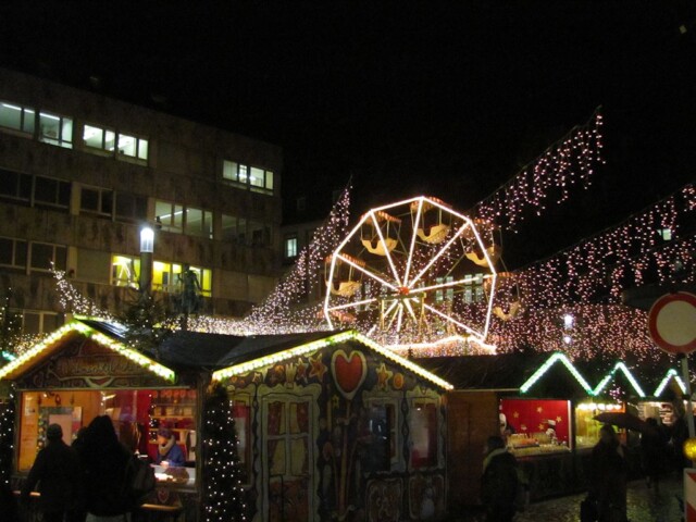 Virée en Allemagne pour une tournée des marchés de Noël. Une première pour nous, une double première même. Nous partons en effet sans caravane, hiver oblige, et c’est la première fois que nous entreprenons de vraies vacances à cette période. Freiburg im Breisgau est notre première étape. Comme les suivants, l’hôtel est réservé depuis quelques jours. Nous arrivons en fin d’après-midi, ce qui nous donne le loisir d’une première approche des marchés de Noël locaux. Le charme opère immédiatement. La ville recèle plusieurs marchés, chacun a son caractère propre.