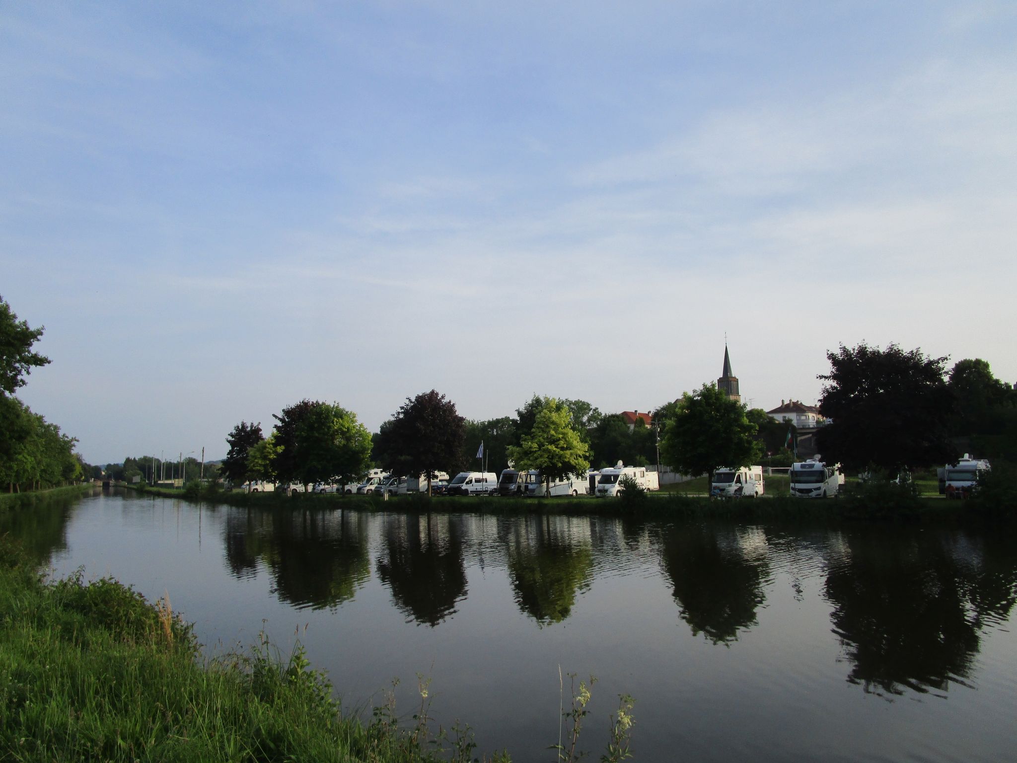 Deux jours de voyage avec une première halte à Charmes au bord de la Moselle pour y passer la nuit sur l’aire camping car park du lieu.